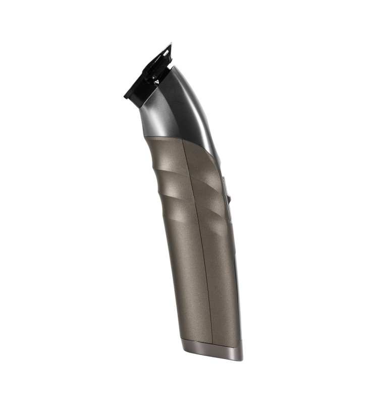 Trymer o modnym, ergonomicznym kształcie wykonany jest z matowego tworzywa sztucznego w odcieniach tytanu. Zapewnia to trwałość sprzętu oraz wpływa na łatwość czyszczenia. Stylowy, polerowany panel dodaje urządzeniu elegancji, a przemyślane umiejscowienie suwaka pod kciukiem sprawia, że obsługa maszynki jest wyjątkowo wygodna. Dodatkowe wgłębienia w obudowie nie tylko podkreślają estetykę, ale również zapobiegają ślizganiu się urządzenia w dłoni, co pozwala na jeszcze większą precyzję strzyżenia.