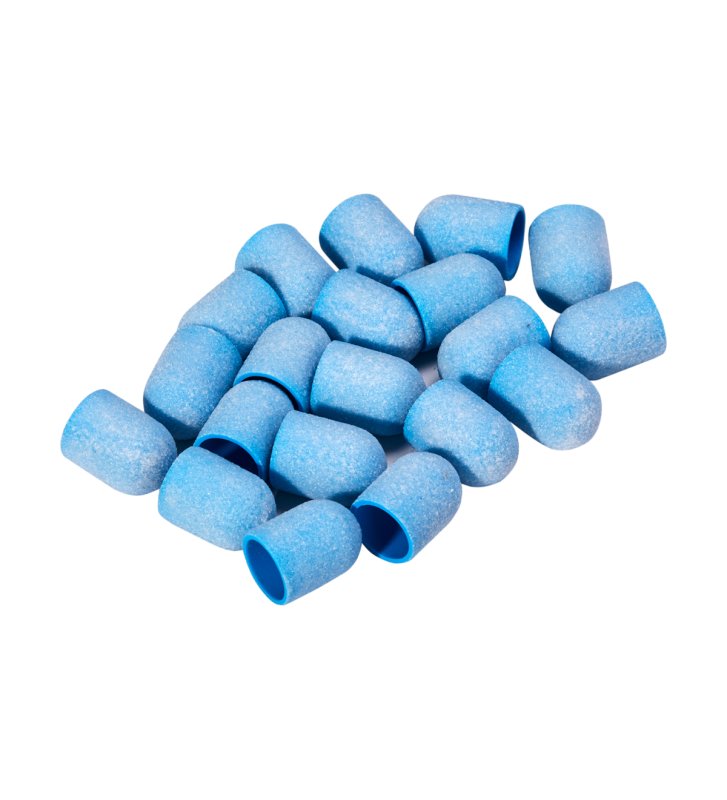 Wodoodporne kapturki ścierne Exo blue Hard Cap z plastikowym rdzeniem doskonale sprawdzają się w pracy podologa, pozwalając na sprawne opracowanie naskórka nawet na dużych powierzchniach. Przeznaczone są zwłaszcza do zabiegów pedicure i manicure oraz podologicznych. Pracuje się z nimi łatwo i nie sprawiają trudności, dzięki wewnętrznemu kompozytowi zapewniającemu trwałość oraz komfort pracy. Nasyp z korundu kosmetycznego pozwala na szybkie i łatwe usunięcie zrogowaciałego naskórka, modzeli, nagniotków oraz pielęgnacji śródstopia. Charakteryzuje się odpowiednimi parametrami, zapewniając niższą temperaturę szlifowania – ogranicza to nagrzewanie, zwiększając komfort zabiegu. Kapturki doskonale trzymają się nośnika, umożliwiając dokładne, bezbolesne i precyzyjne ścieranie powierzchni.