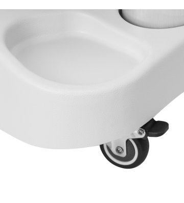 Wózek Azzurro charakteryzuje się solidną konstrukcją z tworzywa sztucznego, która zapewnia trwałość i stabilność. Gumowe kółka z możliwością blokady pozwalają na swobodne manewrowanie wózkiem, co sprawia, że jest on funkcjonalny i wygodny w codziennym użytkowaniu. Utrzymanie wózka w czystości jest wyjątkowo łatwe – powierzchnia jest odporna na zabrudzenia. Wózek jest kompatybilny z większością brodzików dostępnych na rynku.