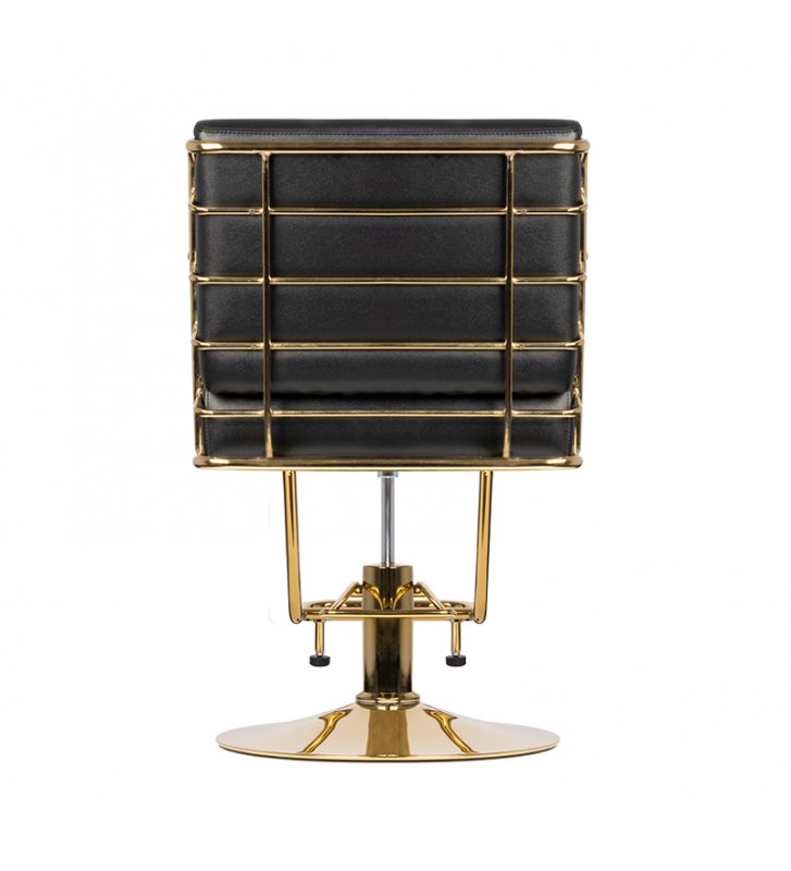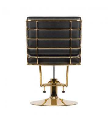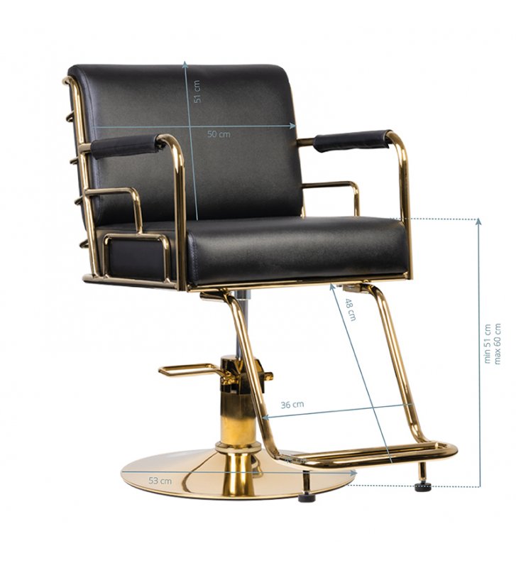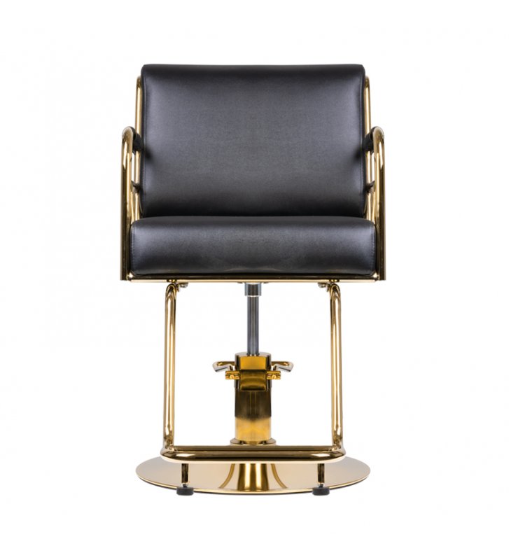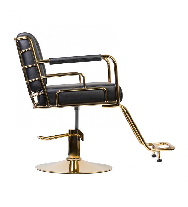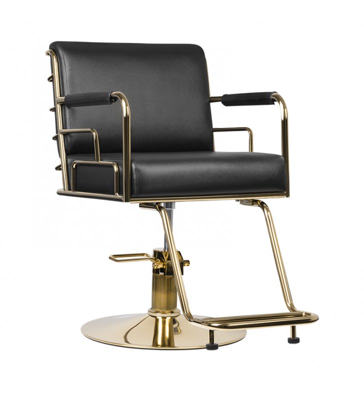 The elegant Gabbiano Lille-M hairdressing chair with a practical hydraulic lift is a functional piece of furniture that will become the pride of any hairdressing salon. Classic colors, interesting design and decorative elements in shades of gold give it a tasteful look. High functionality will ensure comfort for both hairdressers and its users.
