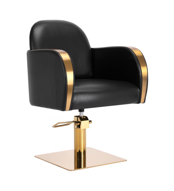 A solid, square base ensures stability during use. The smooth surface makes this element easy to keep clean . The wide seat, filled with appropriately hard foam, ensures high comfort of use and convenience even during long hours of treatments. The armrests are at the right height, thanks to which they allow the client's shoulders to be positioned correctly - this means that he does not hide his head in his arms or slouch - clearly improving treatments, including haircuts. This facilitates the precise performance of services .