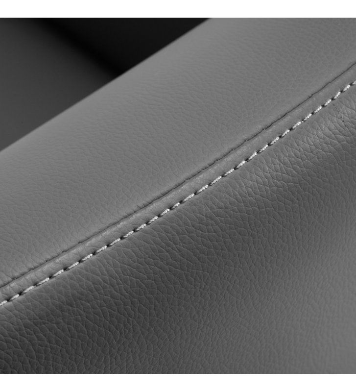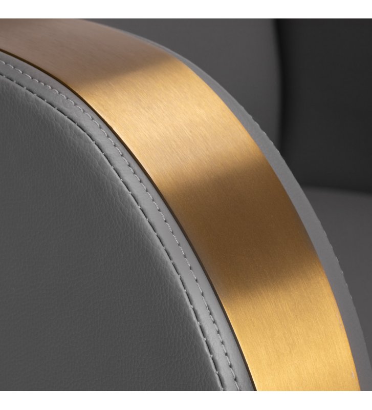 The armchair is filled with foam, which is durable and does not deform , ensuring comfortable use for a long time. The upholstery is made of pleasant to the touch imitation leather with a specific structure. Thanks to the use of such material, the equipment is resistant to moisture, durable and easy to clean . Covering in shades of gray and decorative metal surfaces lacquered in gold colors give it an expression of timeless elegance . The distinctive classic finish makes it look great in almost any space.