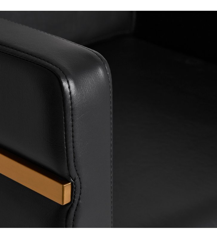 The armchair is filled with foam, which is durable and does not deform , ensuring comfortable use for a long time. The upholstery is made of pleasant to the touch imitation leather with a specific structure. Thanks to the use of such material, the equipment is resistant to moisture, durable and easy to clean . Covering in shades of black and decorative metal surfaces varnished in the colors of old gold give it an expression of timeless elegance . The distinctive classic finish makes it look great in almost any space.
