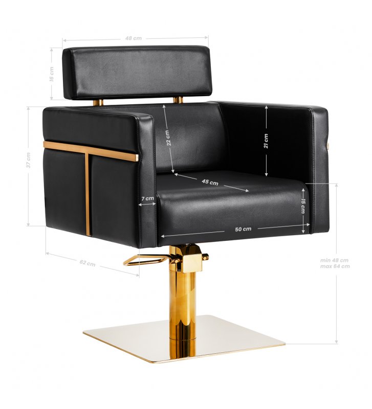 A solid, square base ensures stability during use. The smooth surface makes this element easy to keep clean . The wide seat, filled with foam of appropriate hardness, ensures high comfort of use and convenience even during long hours of treatments. The armrests are at the right height, thanks to which they allow for the correct positioning of the client's shoulders - this means that he does not hide his head in his arms or slouch - significantly improving treatments, including haircuts. The fixed-height headrest provides a comfortable backrest, helps you relax during the procedure and maintain the position for a longer time. This facilitates the precise performance of services .