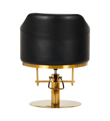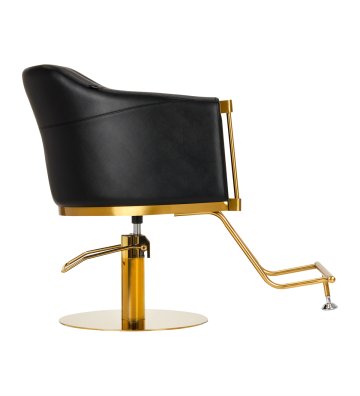 Fotel fryzjerski Gabbiano Burgos wyposażony w podnośnik hydrauliczny jest praktycznym meblem, który stanie się ozdobą salonu fryzjerskiego. Klasyczna kolorystyka, dedykowany podnóżek i ozdobne elementy w odcieniach złota nadają mu elegancki wygląd. Wysoka funkcjonalność zapewni komfort zarówno fryzjerom, jak i jego użytkownikom.