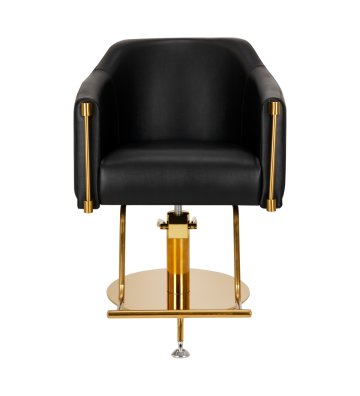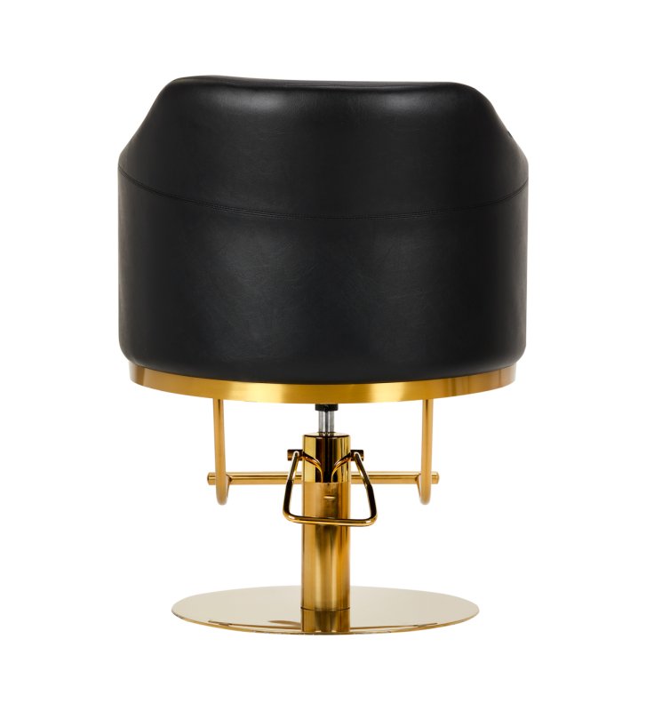Solidna, okrągła podstawa zapewnia stabilność w trakcie użytkowania. Gładka powierzchnia sprawia, że element ten jest łatwy do utrzymania w czystości. Szerokie siedzisko, wypełnione pianką o odpowiedniej twardości, gwarantuje wysoki komfort użytkowania i wygodę nawet podczas wielogodzinnych zabiegów. Podłokietniki znajdują się na wysokości, która pozwala na prawidłowe ułożenie barków klienta – sprawia to, że nie chowa głowy w ramionach ani się nie garbi – wyraźnie usprawniając zabiegi, w tym strzyżenie. Ułatwia to precyzyjne wykonywanie usług.