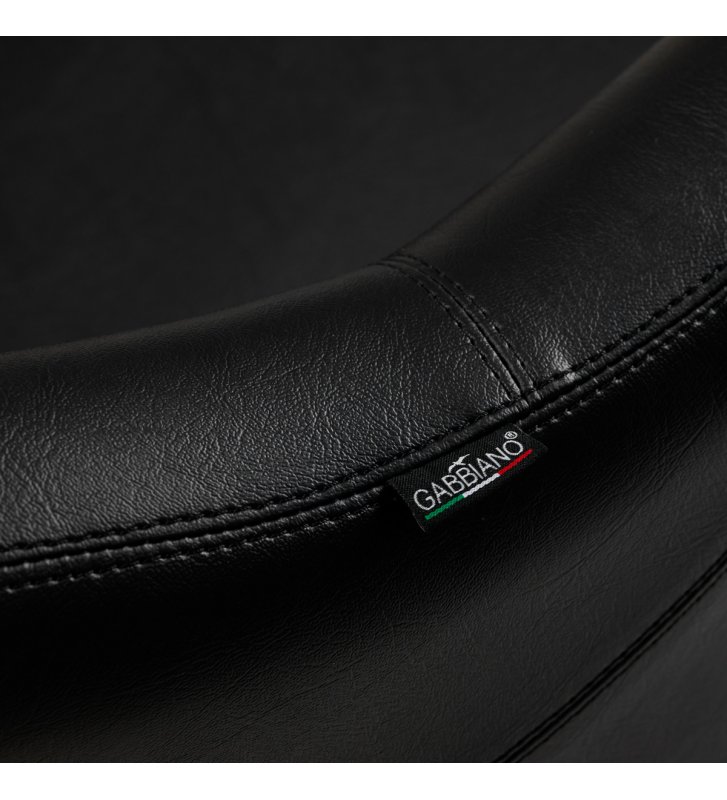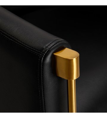Fotel wypełniony jest pianką, która jest trwała i nie odkształca się, zapewniając komfortowe użytkowanie przez długi czas. Obicie wykonane jest z przyjemnej w dotyku imitacji skóry o specyficznej strukturze. Dzięki użyciu takiego materiału, sprzęt jest odporny na wilgoć, wytrzymały i łatwy w czyszczeniu. Pokrycie w odcieniach czerni oraz ozdobne powierzchnie metalowe lakierowane w barwach złota nadają mu wyraz ponadczasowej elegancji. Wyróżniające go klasyczne wykończenie sprawia, że będzie doskonale prezentować się w niemal każdej przestrzeni.