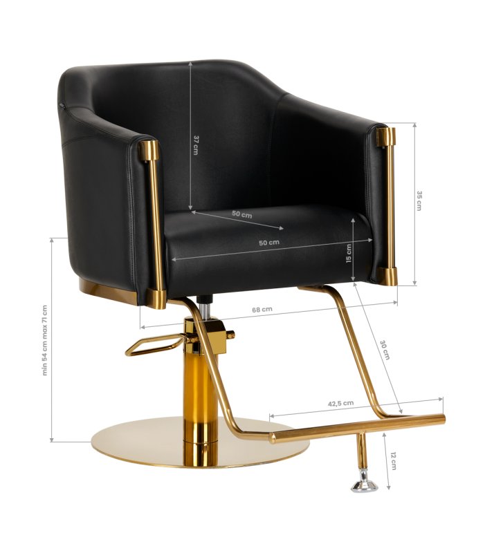 Trwały podnośnik hydrauliczny pozwala na regulację poziomu siedziska w granicach 54-71 cm, nawet w momencie, kiedy klient siedzi na fotelu. Gwarantuje to bardziej ergonomiczną pracę, dzięki możliwości dostosowania wysokości do wzrostu zarówno klienta, jak i fryzjera. Odpowiednio wyprofilowane, zaokrąglone oparcie pozwala na zajęcie dogodnej pozycji, co ma znaczenie zwłaszcza w przypadku zabiegów trwających wiele godzin. Znacznym plusem jest dopasowany do tego modelu podnóżek, który zapewnia stabilne oparcie dla stóp użytkownika.