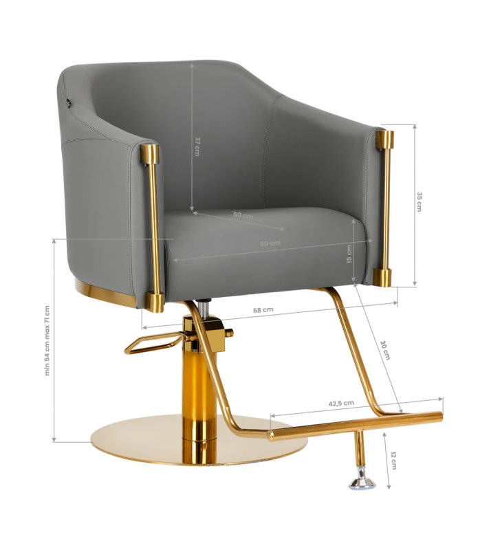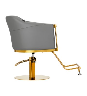 The Gabbiano Burgos hairdressing chair equipped with a hydraulic lift is a practical piece of furniture that will become the decoration of a hairdressing salon. Classic colors, a dedicated footrest and decorative elements in shades of gold give it an elegant look. High functionality will ensure comfort for both hairdressers and its users.