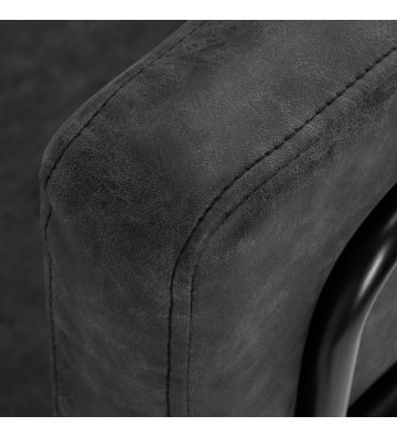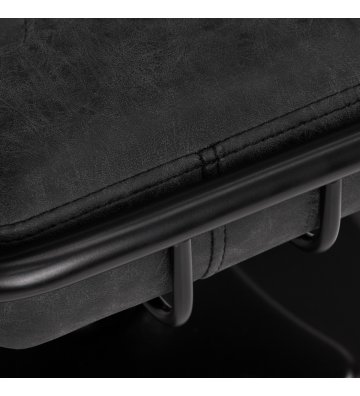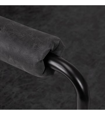Funkcjonalny mebel w stylu loftowym wypełniony jest trwałą, odporną na odkształcenia pianką, z kolei obicie wykonano z przyjemnej w dotyku skóry syntetycznej w odcieniach czerni. Zastosowane materiały zapewniają komfortowe użytkowanie mebla przez długi czas i sprawiają, że sprzęt jest odporny na wilgoć, wytrzymały oraz łatwy do czyszczenia. Metalowe elementy w odcieniach czerni nadają mu wyraz surowej elegancji. Nowoczesny fotel fryzjerski Gabbiano Katania Loft wyróżnia minimalistyczny design, który nadaje mu wyjątkowy charakter i sprawia, że fotel będzie doskonale prezentować się w wielu salonach fryzjerskich.