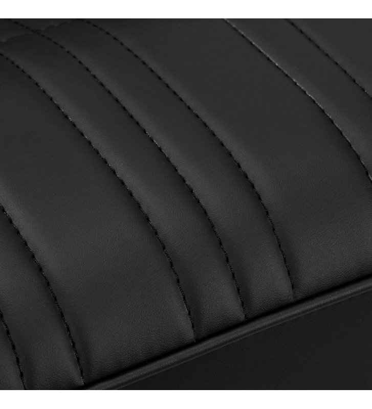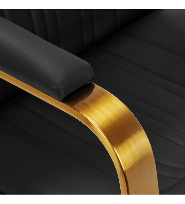 Filling with durable, deformation-resistant foam and upholstery made of pleasant-to-touch synthetic leather ensure the durability of the furniture and its comfortable use over the years . The materials used also make the equipment resistant to moisture, durable and easy to clean . Cover in shades of black, aesthetic stitching and elements in shades of gold give it a unique character . The modern design of this equipment makes it fit perfectly into the atmosphere of many professional salons, giving them a unique style.