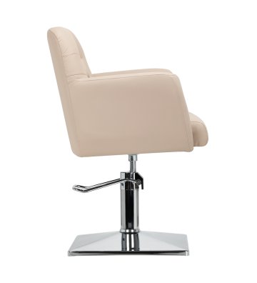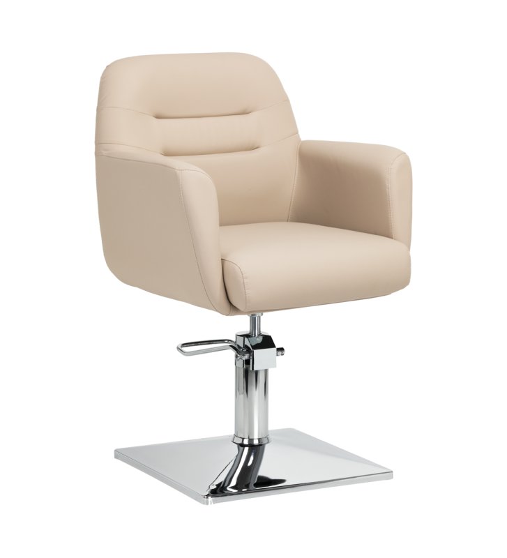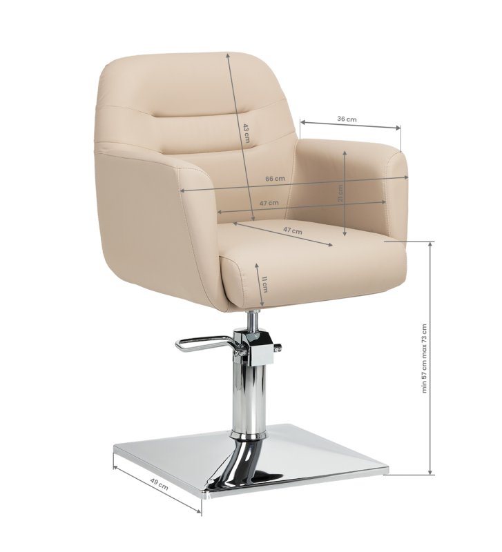 The solid rectangular base guarantees stability during use . The smooth surface with a mirror finish makes this element easy to keep clean. The seat with foam filling ensures high comfort of use and convenience even during many hours of treatments . The full rotation mechanism makes the hairdresser's work more effective and convenient. The armrests located at the right height allow for the correct positioning of the client's shoulders - this means that they do not hide their head in their shoulders or hunch - clearly facilitating precise performance of treatments, including haircuts.