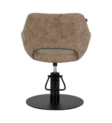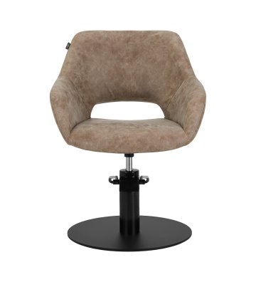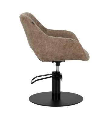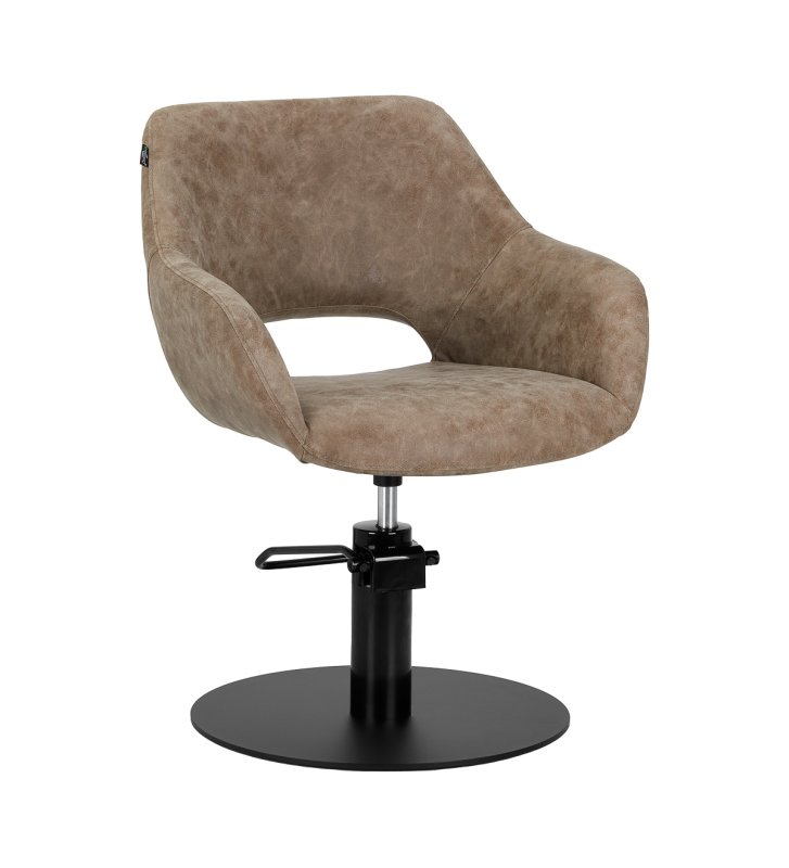 A solid, flat base in the shape of a circle guarantees stability during use. The smooth surface with a matte finish makes this element easy to keep clean and looks elegant. A comfortable seat with foam filling ensures high comfort of use , even during many hours of treatments. The armrests are at the right height, thanks to which they allow the client's shoulders to be positioned correctly - this means that they do not hide their head in their shoulders or slouch - clearly facilitating precise performance of treatments, including haircuts. Equipping the chair with a full rotation mechanism makes the hairdresser's work more effective and comfortable.