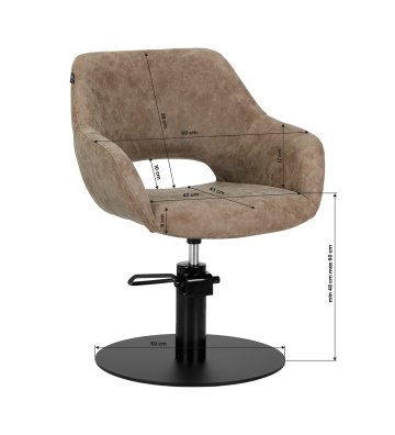 The height is adjusted using a durable hydraulic lift , which allows you to smoothly adjust the seat level within the range of 48-60 cm - even when the client is sitting in the chair. This guarantees more ergonomic work , providing the possibility of freely adjusting the level of the chair to the height of both the client and the hairdresser. The appropriately profiled backrest is upholstered with synthetic leather and allows you to take a comfortable position. This provides excellent support for the back, which is especially important in the case of treatments lasting many hours. A big plus is the opening located between the backrest and the seat , which makes it easier to keep the salon clean. It allows you to easily sweep hair from every corner of the chair, saving time preparing the work station between clients.