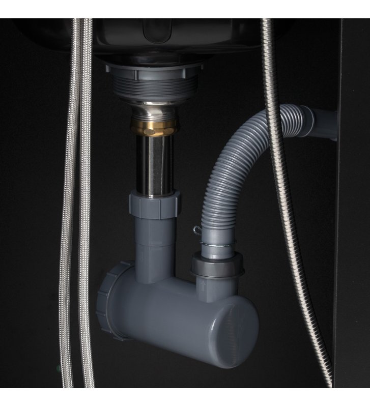 Stacja została wykonana z płyt w odcieniach głębokiej czerni, co nadaje jej elegancki i wyrazisty charakter – doskonale wpisujący się w nowoczesne wnętrza. W komplecie znajduje się armatura w kolorze chromu: bateria, słuchawka prysznicowa oraz elastyczne węże, zapewniające pełną funkcjonalność. Chromowane akcenty doskonale współgrają z matową powierzchnią zabudowy, podkreślając nowoczesny styl i profesjonalne wykończenie mebla.