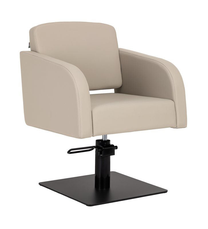 Minimalistyczny fotel fryzjerski z podnośnikiem hydraulicznym
