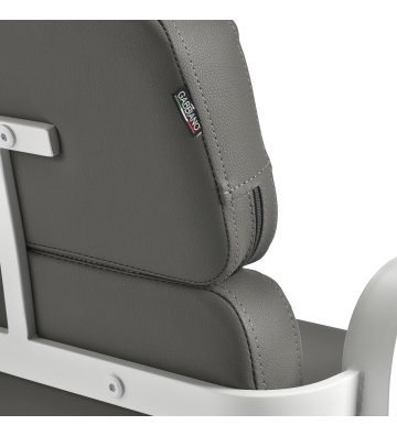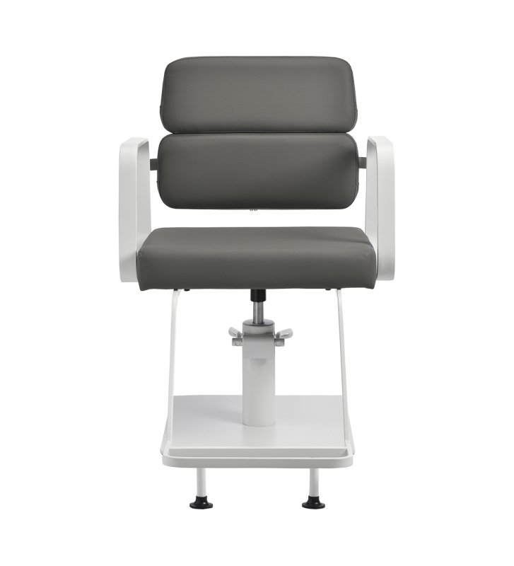 Wypełnienie z trwałej, odpornej na odkształcenia pianki oraz obicie wykonane z przyjemnej w dotyku skóry syntetycznej zapewniają trwałość mebla i jego komfortowe użytkowanie przez długi czas. Sprawiają również, że sprzęt jest odporny na wilgoć, wytrzymały oraz łatwy do czyszczenia. Pokrycie w odcieniach szarości nadaje mu wyjątkowego charakteru. Sprzęt wyróżnia nowoczesny design, który sprawia, że fotel będzie doskonale prezentować się w wielu profesjonalnych salonach.