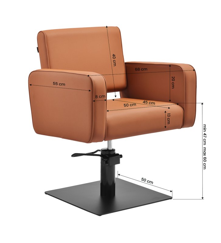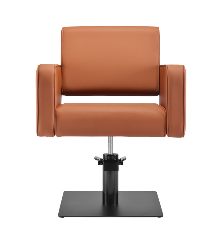 Fotel fryzjerski Gabbiano Bilbao łączy minimalistyczny design z funkcjonalnością i wygodą codziennego użytkowania. Subtelnie zaokrąglone linie nadają mu lekkości i nowoczesnego charakteru, a stabilna, kwadratowa podstawa w matowej czerni podkreśla jego stylowy wygląd. Miękkie wypełnienie w połączeniu z przyjemną w dotyku skórą syntetyczną w odcieniach brązu zapewnia wygodę nawet podczas długich zabiegów. Starannie dobrane materiały gwarantują trwałość, odporność na wilgoć oraz łatwość czyszczenia. Fotel doskonale komponuje się zarówno z nowoczesnymi, jak i klasycznymi aranżacjami, nadając salonowi profesjonalnego charakteru.