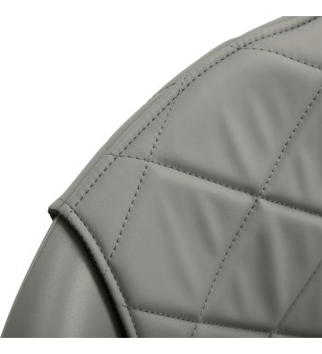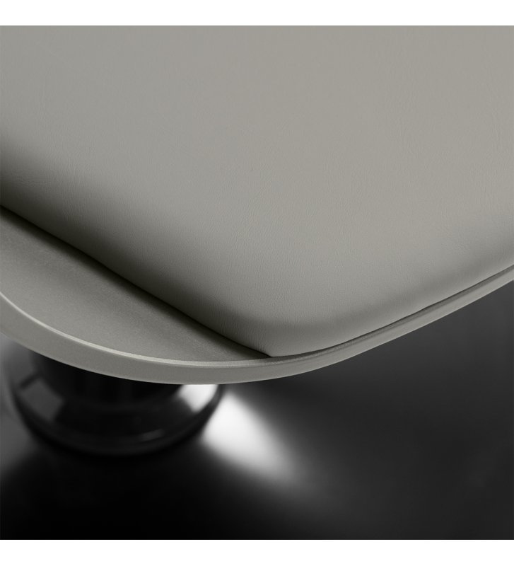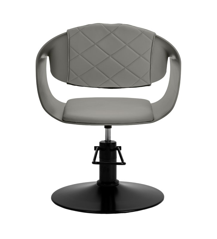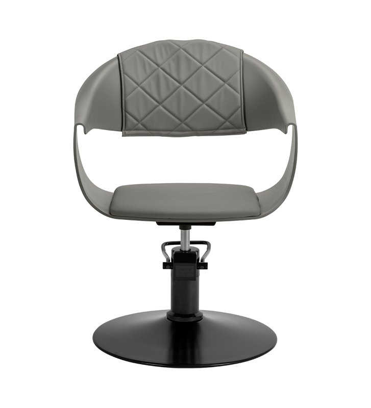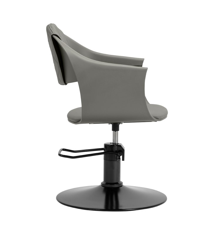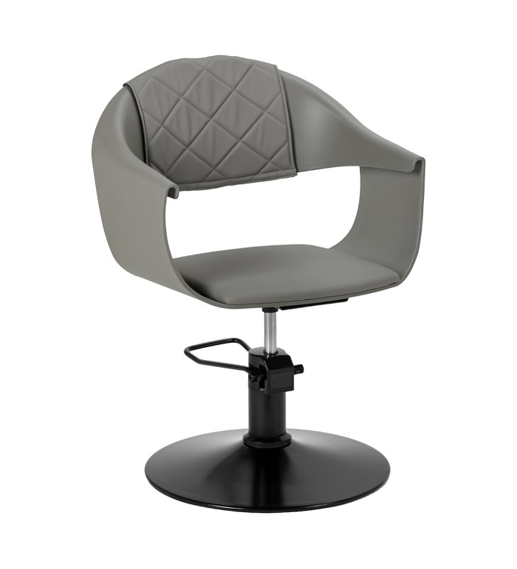 Wytrzymała konstrukcja z tworzywa sztucznego w odcieniach szarości zapewnia trwałość. Zastosowane materiały sprawiają, że sprzęt jest komfortowy w użytkowaniu, odporny na wilgoć oraz łatwy do czyszczenia. Okrągła podstawa w odcieniach czerni gwarantuje stabilność i wytrzymałość. Minimalistyczna szarość w połączeniu z estetycznymi przeszyciami oraz czernią podstawy sprawia, że fotel doskonale komponuje się z różnymi stylami wnętrz salonów fryzjerskich, wprowadzając elegancki i nowoczesny akcent.
