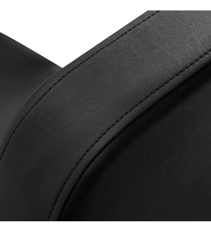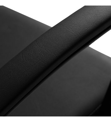 Siedzisko wypełniono trwałą, odporną na odkształcenia pianką, dzięki czemu fotel na długo zachowuje swoją formę i pełną funkcjonalność. Obicie z przyjemnej w dotyku imitacji skóry cechuje się odpornością na wilgoć, wysoką wytrzymałością oraz łatwością w utrzymaniu czystości. Głęboka czerń tapicerki dodaje mu ponadczasowej elegancji. Klasyczne wykończenie sprawia, że fotel wygląda doskonale w niemal każdej przestrzeni, podkreślając styl salonu.