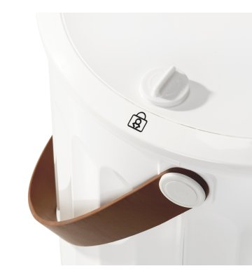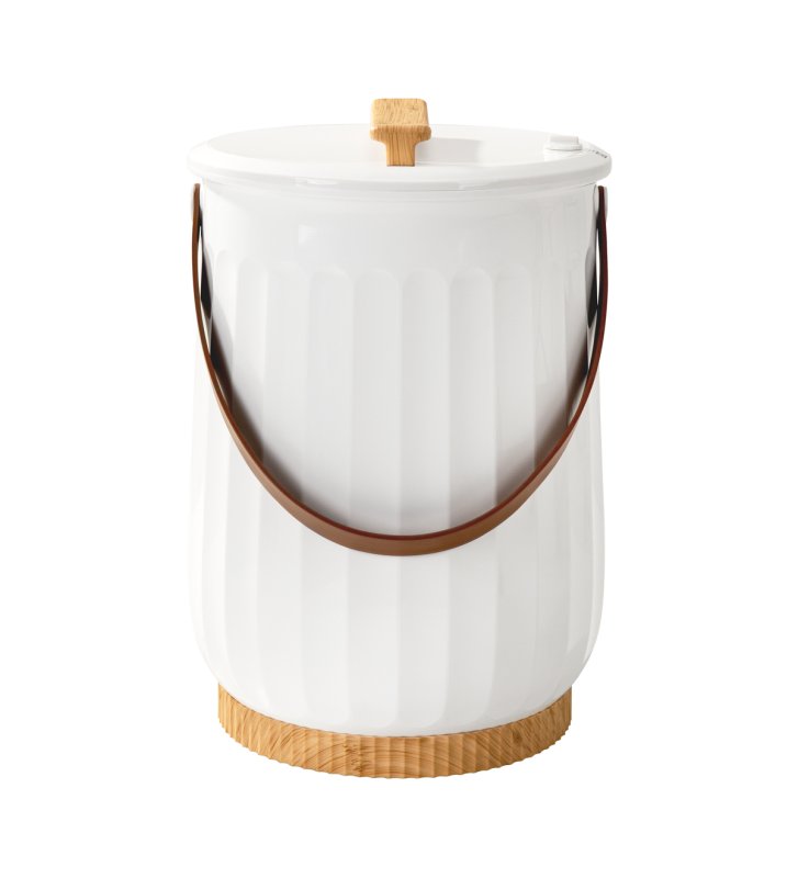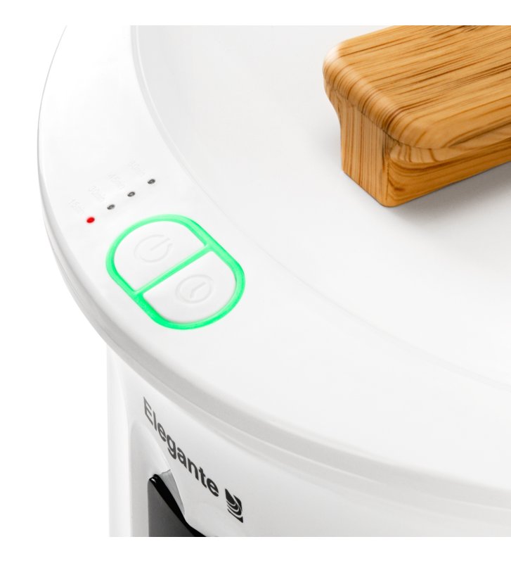 The heater casing is made of white plastic, which makes it easy to clean . Aesthetic grooves and decorative elements imitating wood are a visually pleasing addition. The LED light around the buttons informs about the heater's operating status, while the control diode indicates the selected operating time. The free-standing device is convenient to carry - made easier by a special durable strap - and to store, and the stylish, round base saves space.