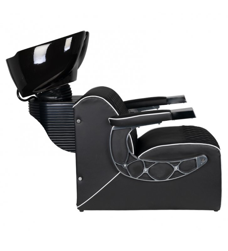 Obicie z najwyższej jakości ekoskóry w kolorze czarnym to kolejny atut tej myjni fryzjerskiej. Nie tylko prezentuje się stylowo i elegancko, ale również jest łatwe w utrzymaniu czystości. Ekoskóra jest trwała i odporne na plamy, co sprawia, że utrzymanie tej myjni w nienagannej czystości jest prostsze niż kiedykolwiek wcześniej.