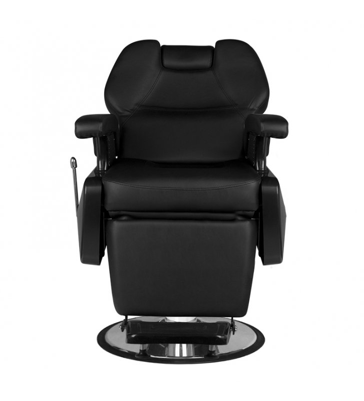 New in our offer - TIZIANO barber chair. It is a modern, perfectly finished, economical piece of furniture. It gives the client of the salon a maximum feeling of comfort during the procedures performed. In addition to the up-down adjustment, the chair has a reclining backrest. Despite its small dimensions, it is possible to place the client in a convenient, half-lying position. The comfortable seat is covered with high-quality eco-leather. The wide base guarantees the stability of the furniture during work. An additional advantage is the ability to easily adjust the headrest. Black furniture.