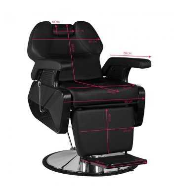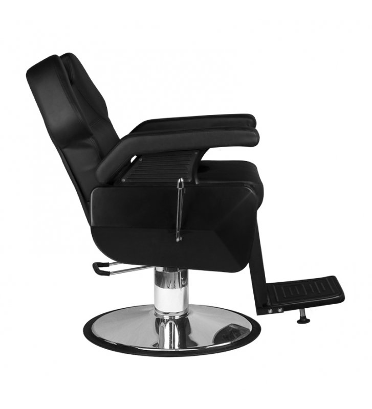 The comfortable seat is upholstered with high-quality eco-leather, providing a luxurious and durable surface for clients to relax on. The wide, chrome-plated base guarantees stability and security during use, ensuring that the chair remains steady even during intricate hair styling or grooming procedures.