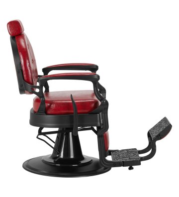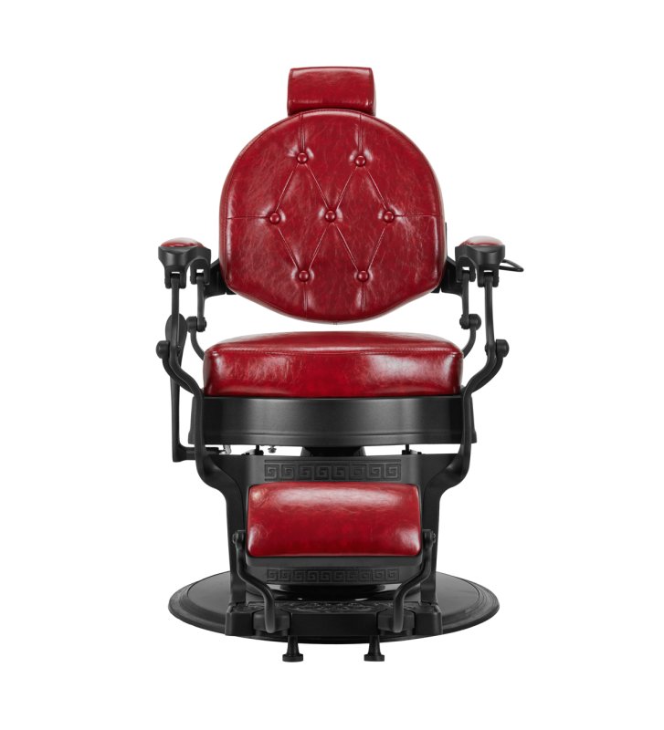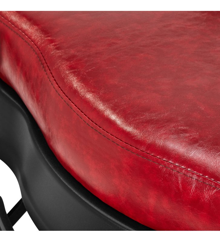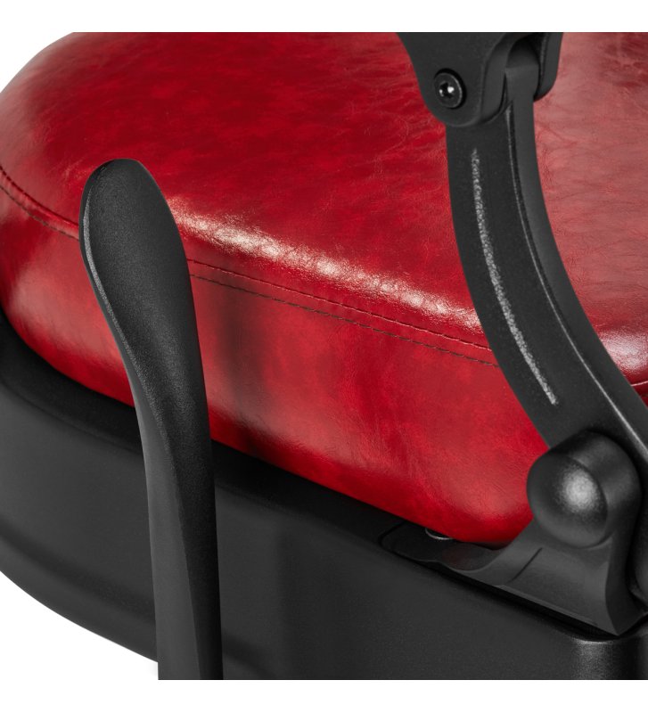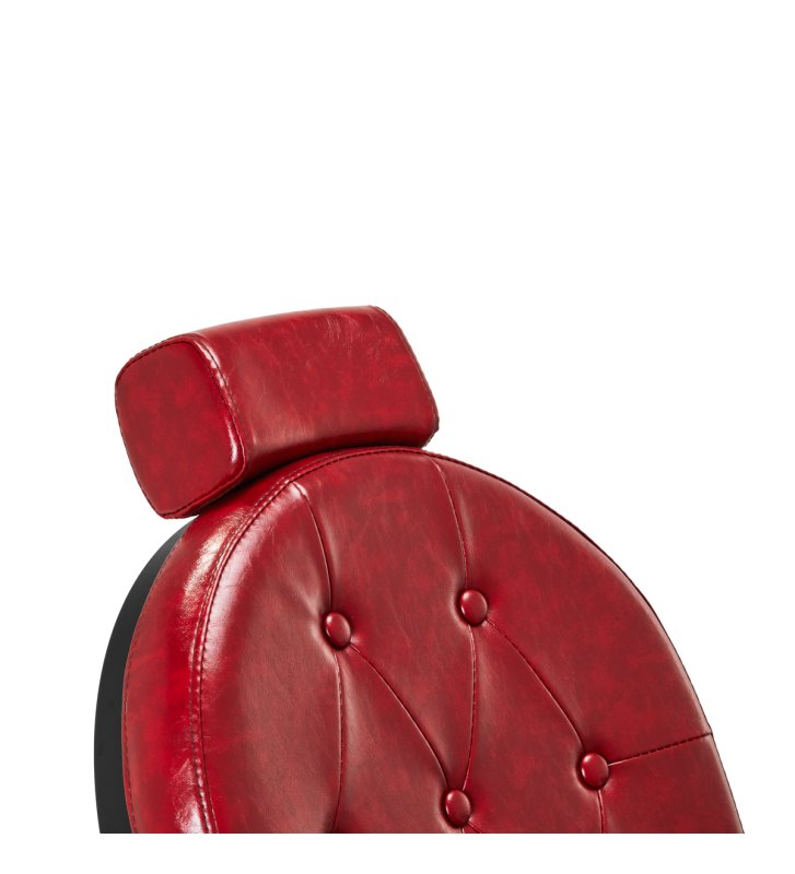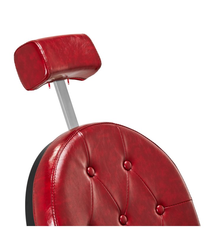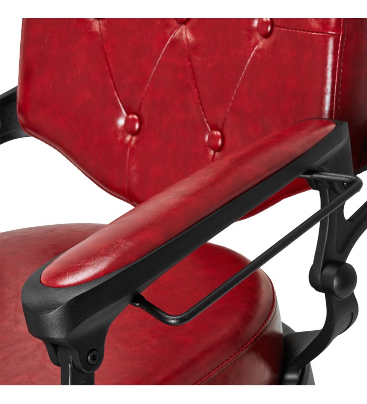 The solid construction of the base ensures stability and high comfort of use. The seat filling is made of durable, deformation-resistant foam and the upholstery is made of pleasant-to-touch synthetic leather with a glossy finish, ensuring the durability of the furniture and its comfortable use for a long time . They also make the equipment resistant to moisture, durable and easy to clean . The red cover with quilting and decorative buttons gives it a unique character. The armchair with a characteristic design, referring to the vintage style , perfectly fits the atmosphere of barber salons, emphasizing their unique atmosphere.