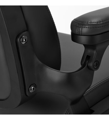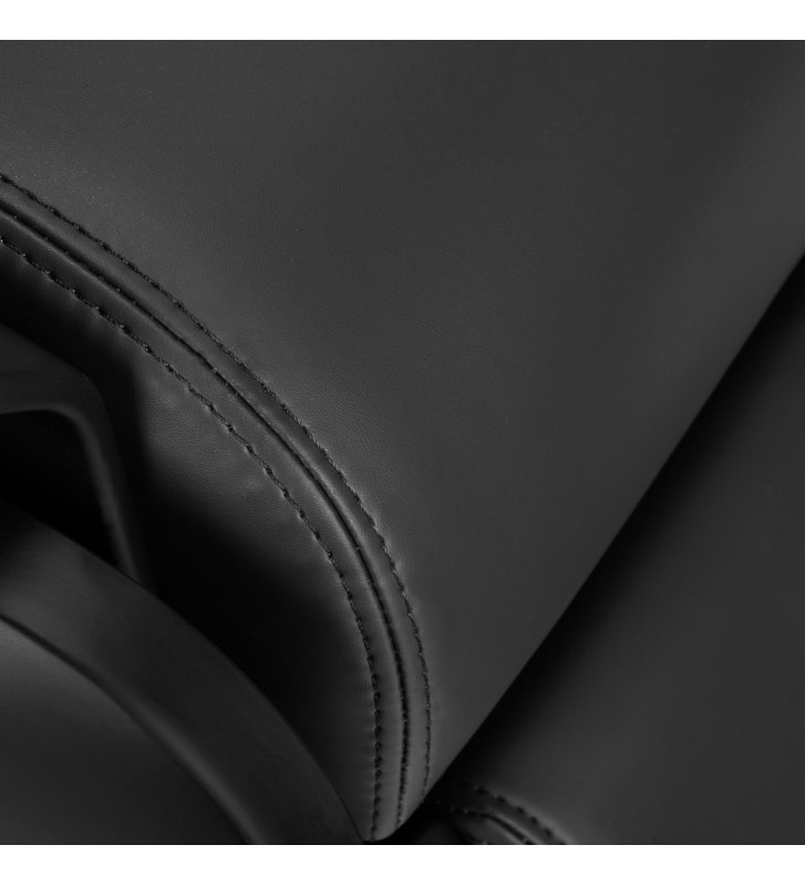 Solidna konstrukcja podstawy zapewnia stabilność i trwałość mebla. Przyjemne w dotyku obicie wykonane z syntetycznej skóry w odcieniach czerni jest estetyczne, odporne na wilgoć i łatwe do czyszczenia. Wszystkie te elementy łączą się, tworząc mebel, który nie tylko doskonale spełnia swoją funkcję, ale także dodaje salonowi elegancji i profesjonalizmu.