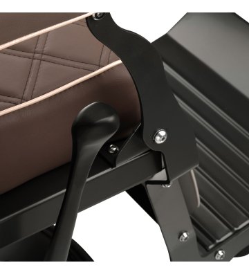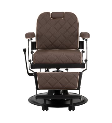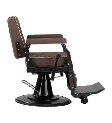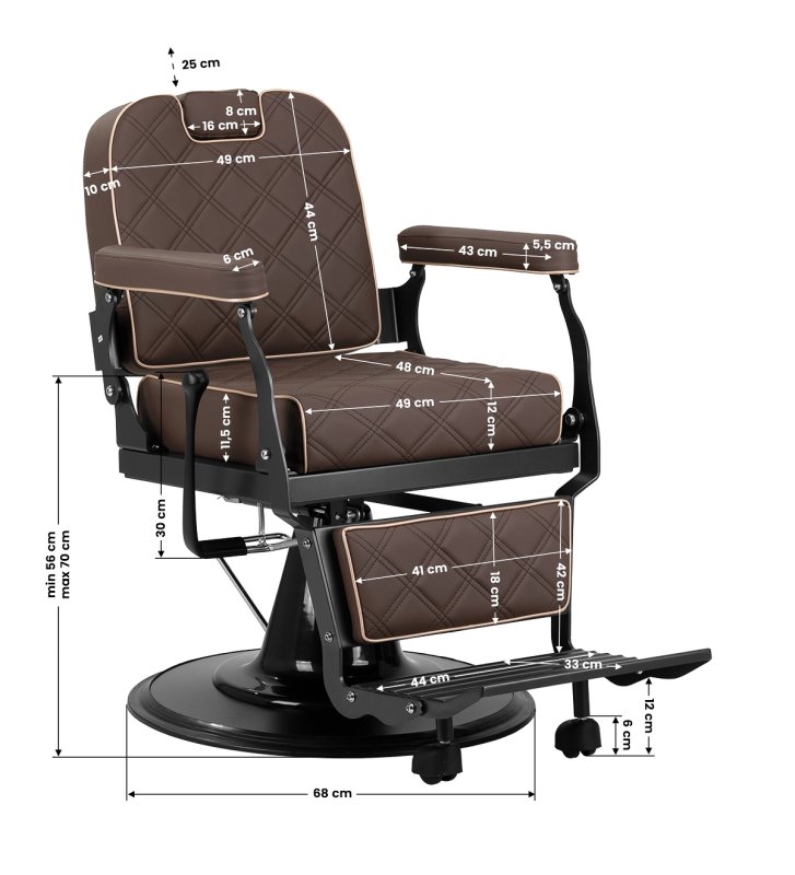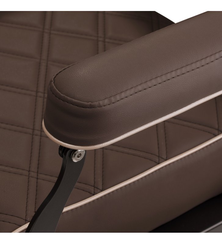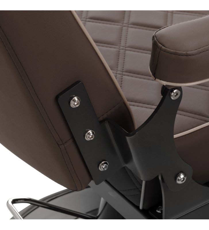 The solid construction ensures stability and high comfort of use . The seat filled with foam resistant to deformation and upholstery made of soft, matte synthetic leather ensure durability and comfort. Moisture-resistant materials are not only durable, but also easy to clean . The brown shade of the upholstery gives the armchair a unique character , and its elegant style perfectly matches the decor of any barber shop.