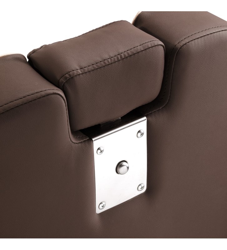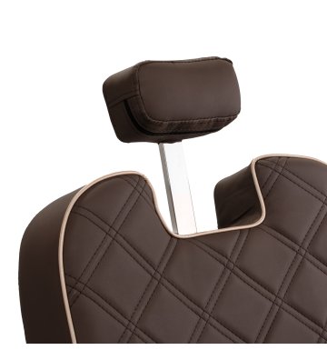 New in our offer - AMADEO barber chair. It is a modern, perfectly finished, economical piece of furniture. It gives the client of the salon a maximum feeling of comfort during the procedures performed. In addition to the up-down adjustment, the chair has a reclining backrest. Despite its small dimensions, it is possible to place the client in a convenient, half-lying position. The comfortable seat is covered with high-quality eco-leather. The wide base guarantees the stability of the furniture during work. An additional advantage is the ability to easily adjust the headrest. Brown furniture.