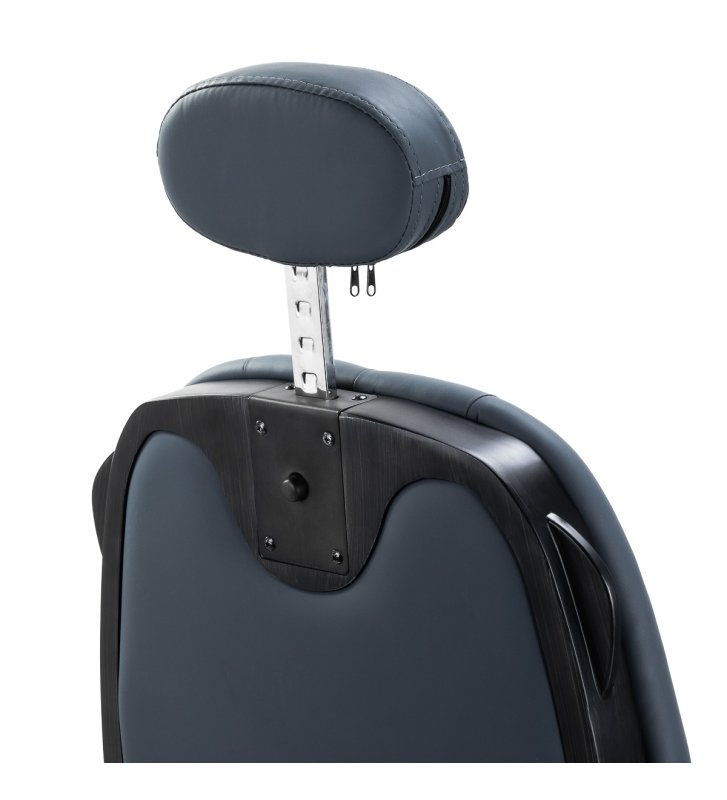 Trwały podnośnik hydrauliczny pozwala na regulację wysokości siedziska w granicach 54-67 cm, nawet w momencie, gdy klient siedzi na fotelu. Gwarantuje to bardziej ergonomiczną pracę, zapewniając możliwość dopasowania poziomu siedziska do wzrostu zarówno klienta, jak i osoby wykonującej zabieg. Fotel posiada odchylane oparcie oraz regulowany podnóżek, dzięki czemu możliwe jest ułożenie klienta w dogodnej, półleżącej pozycji. Takie ustawienie gwarantuje lepszy dostęp podczas niektórych usług. Dodatkowo wysuwany zagłówek zapewnia doskonałe podparcie dla głowy, dzięki możliwości dopasowania do indywidualnych potrzeb.