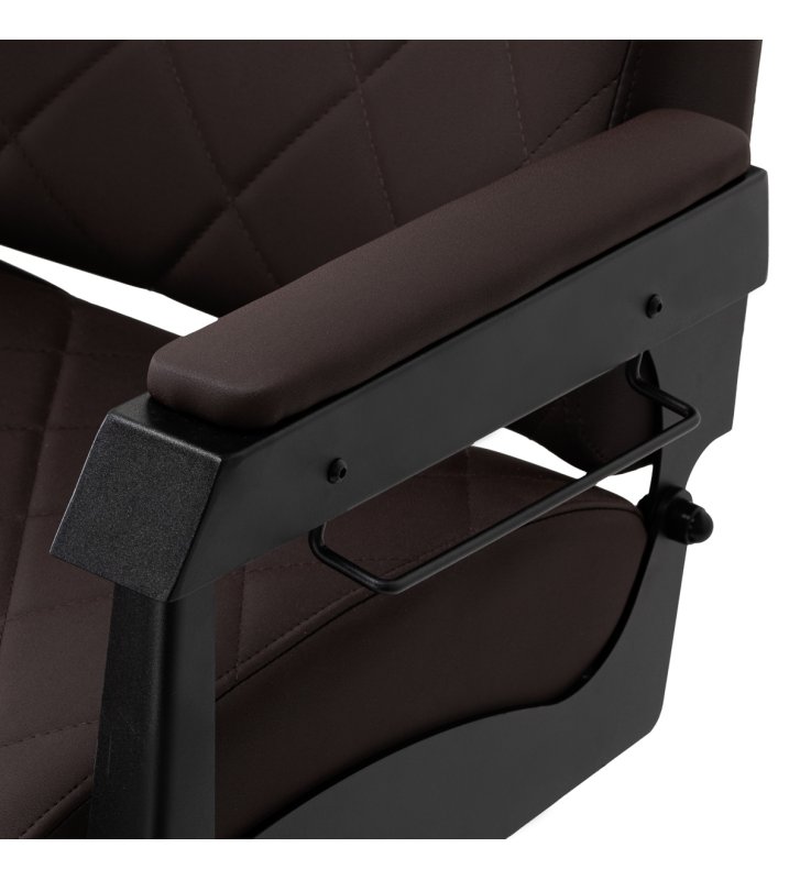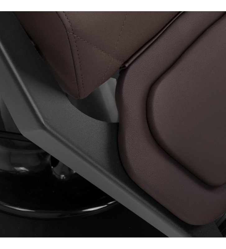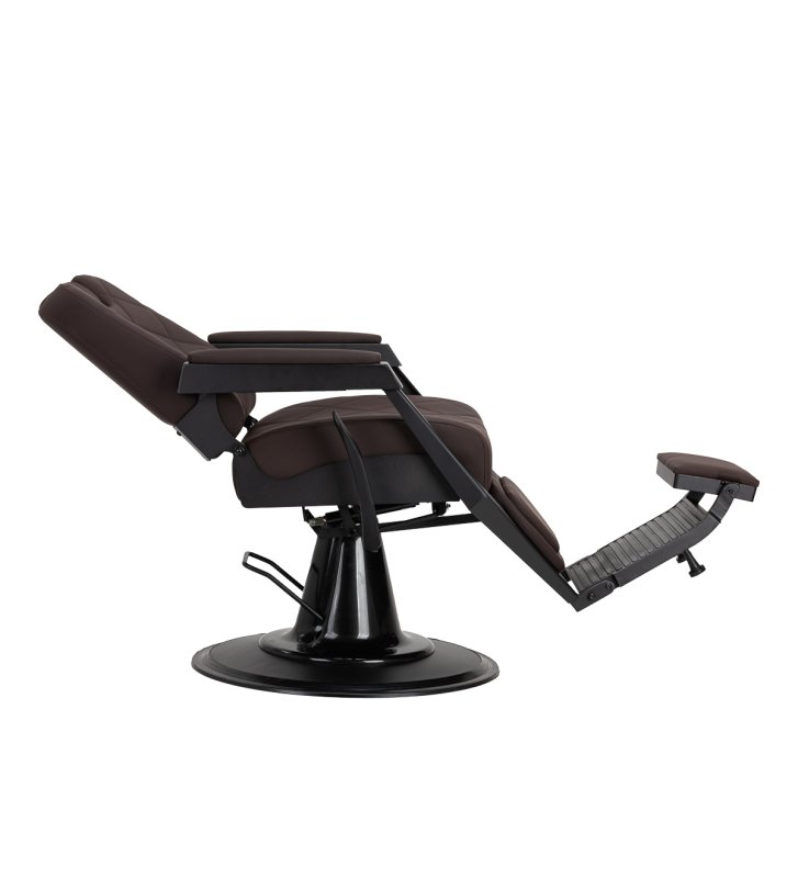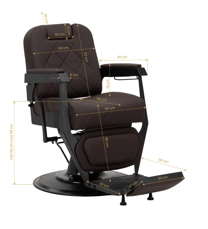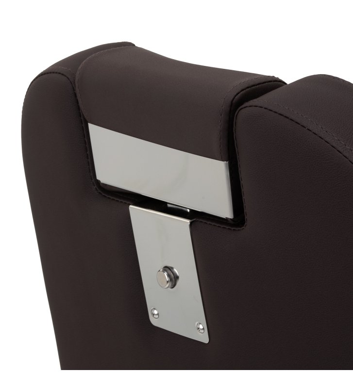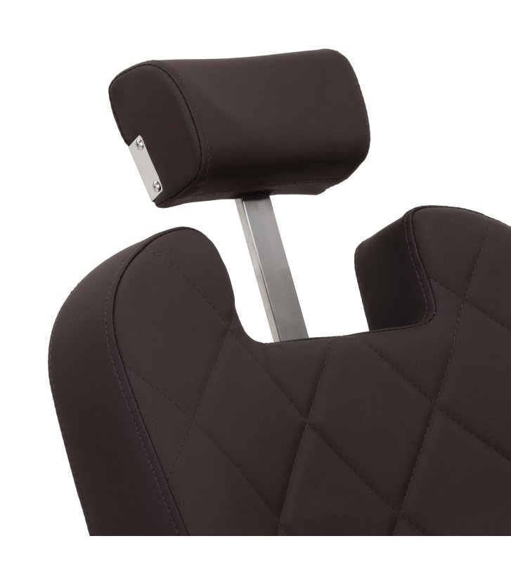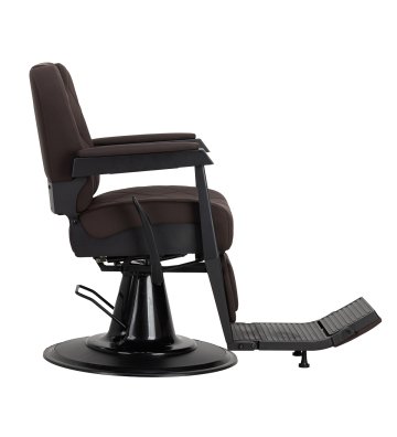 New in our offer - RUFO barber chair. It is a modern, perfectly finished, economical piece of furniture. It gives the client of the salon a maximum feeling of comfort during the procedures performed. In addition to the up-down adjustment, the chair has a reclining backrest. Despite its small dimensions, it is possible to place the client in a convenient, half-lying position. The comfortable seat is covered with high-quality eco-leather. The wide base guarantees the stability of the furniture during work. An additional advantage is the ability to easily adjust the headrest. Brown furniture.