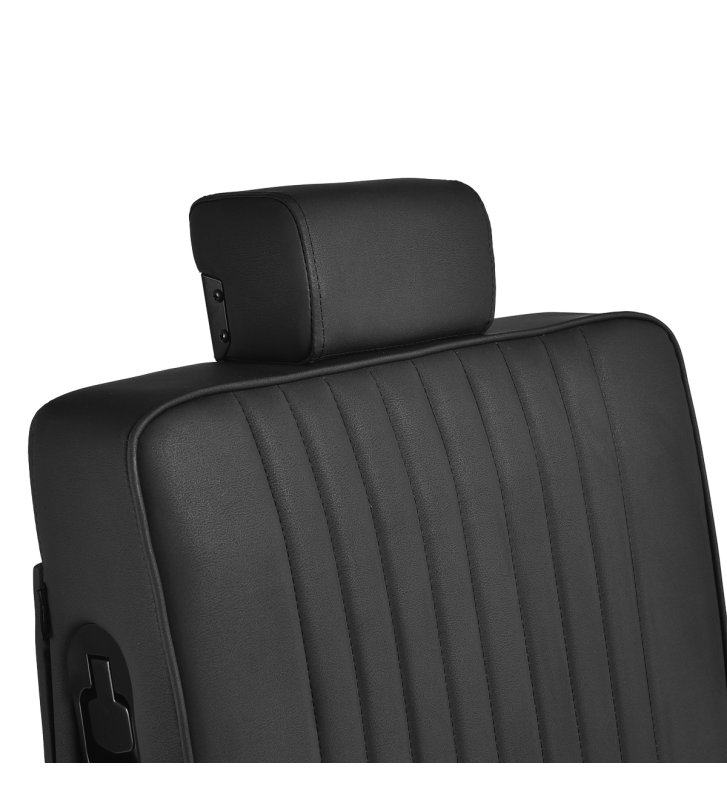 It is a modern, perfectly finished piece of furniture, giving the salon client a maximum feeling of comfort during the treatments performed. In addition to the up-down adjustment, the chair has a reclining backrest and an adjustable footrest. Despite its small dimensions, it is possible to place the client in a convenient, half-lying position. The comfortable seat is covered with high-quality eco-leather. The wide, chrome-plated base guarantees the stability of the furniture during operation. An additional advantage is the ability to easily adjust the headrest. Black furniture.