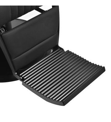 Wydajny podnośnik hydrauliczny pozwala na płynną regulację wysokości siedziska w zakresie 60–76 cm, nawet gdy klient już siedzi na fotelu, co umożliwia ergonomiczne dopasowanie fotela do wzrostu klienta i preferencji osoby wykonującej zabieg. Intuicyjny mechanizm boczny pozwala na łatwe rozłożenie oparcia i podnóżka do pozycji półleżącej, zapewniając komfort podczas bardziej precyzyjnych usług. Wysuwany zagłówek dodatkowo wspiera głowę, zwiększając wygodę użytkowania.
