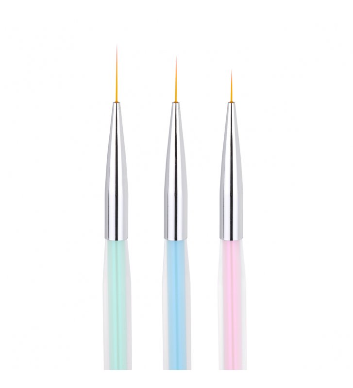 Komplet pędzelków do zdobienia paznokci to doskonałe narzędzie dla każdego pasjonata nail artu. Zestaw składa się z trzech pędzelków o różnej długości włosia, które zapewniają precyzyjne i zróżnicowane możliwości tworzenia kreatywnych zdobień na paznokciach. Niezależnie od tego, czy preferujesz finezyjne wzory, kropki, paski czy delikatne zdobienia, ten zestaw pędzelków do zdobienia paznokci pomoże osiągnąć perfekcyjne rezultaty.