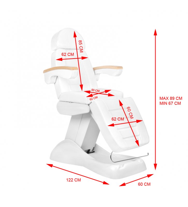 A modern, electrically adjustable cosmetic chair, ensuring comfort during the treatment not only for patients, but also for the persons performing the procedure.