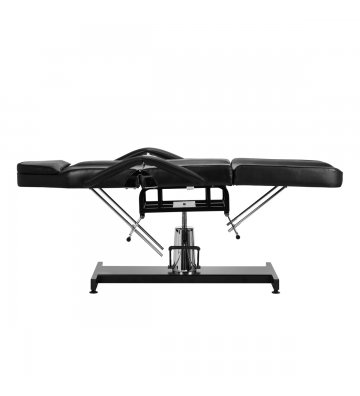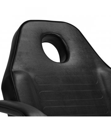 The seat height can be adjusted from 65-79 cm hands-free using a hydraulic pump. This allows people of different heights to use the equipment comfortably and allows it to be adjusted to the individual needs of both the client and the person performing the procedure. The mechanism used is very durable and reliable . Thanks to the hole in the headrest, which is hidden under a properly profiled pillow, the chair is also perfect for back treatments , such as massages.