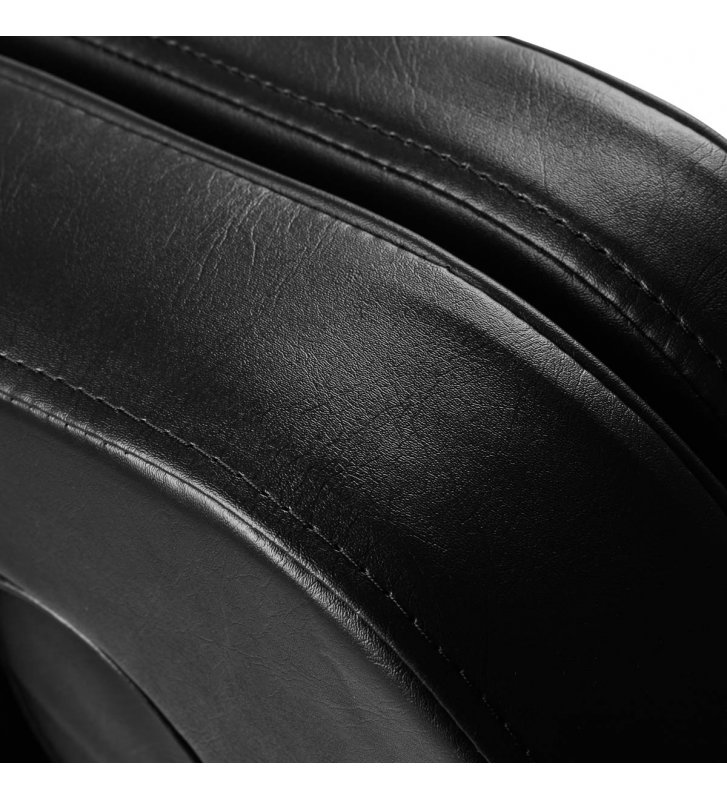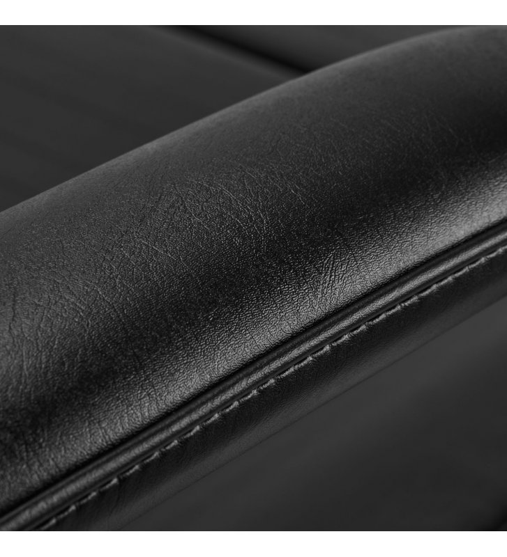 The armchair is filled with foam of appropriate hardness and covered with semi-matt imitation leather in shades of black. Thanks to the use of such material, the equipment is comfortable to use, resistant to moisture and easy to clean . Appropriately profiled hems give the seat an ergonomic shape . Solid construction guarantees durability and stability . Simple design and classic colors allow it to fit into any interior.
