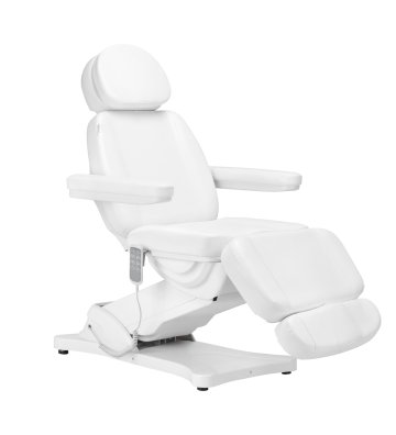 Electric cosmetic chair, ideal for beauty salons and SPA salons. Thanks to independent motors, it allows you to adjust the chair in 4 planes by means of a remote control, making it possible to carry out treatments for the face and body. Using the remote control, we can adjust the height of the chair, the inclination of the backrest and footrests, and set the seat to the cradle position.