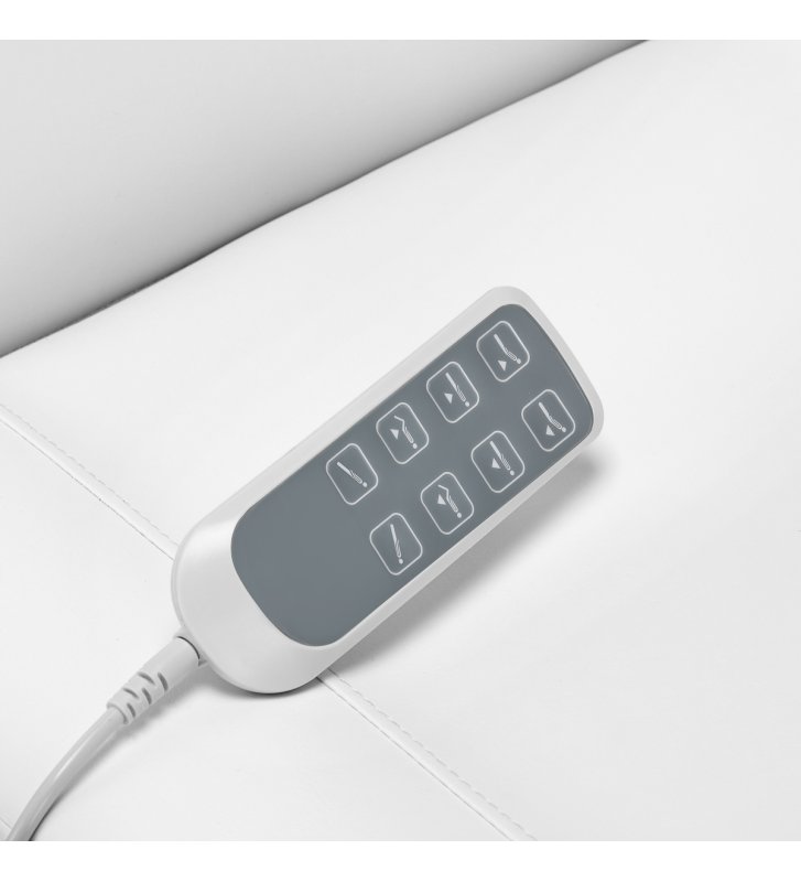 Data: Type: electric Number of actuators: 4 Base color: shades of white Upholstery color: shades of white Upholstery material: synthetic leather Seat filling: foam Control: remote control Power: 240 W Voltage: 220-240V Warranty: 12 months
