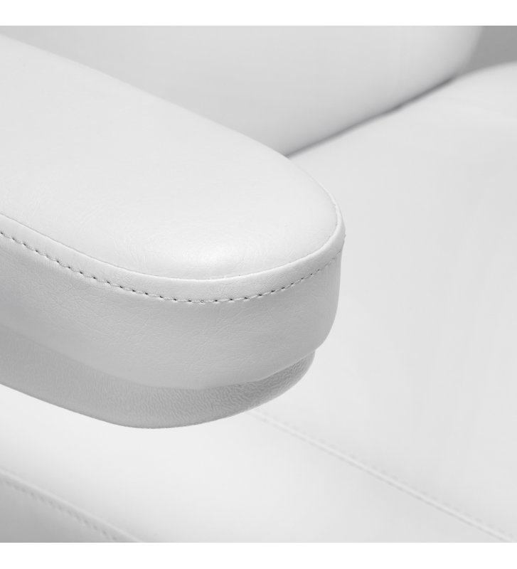 The armchair is filled with contoured foam and covered with pleasant-to-touch synthetic leather in shades of white. The material used makes the equipment easy to clean and resistant to moisture and selected disinfectants . A solid base made of durable white material ensures stability during treatments. Properly profiled hems give the chair a stylish look and make the seat ergonomic. Minimalist, simple design and classic colors allow it to fit into any interior.