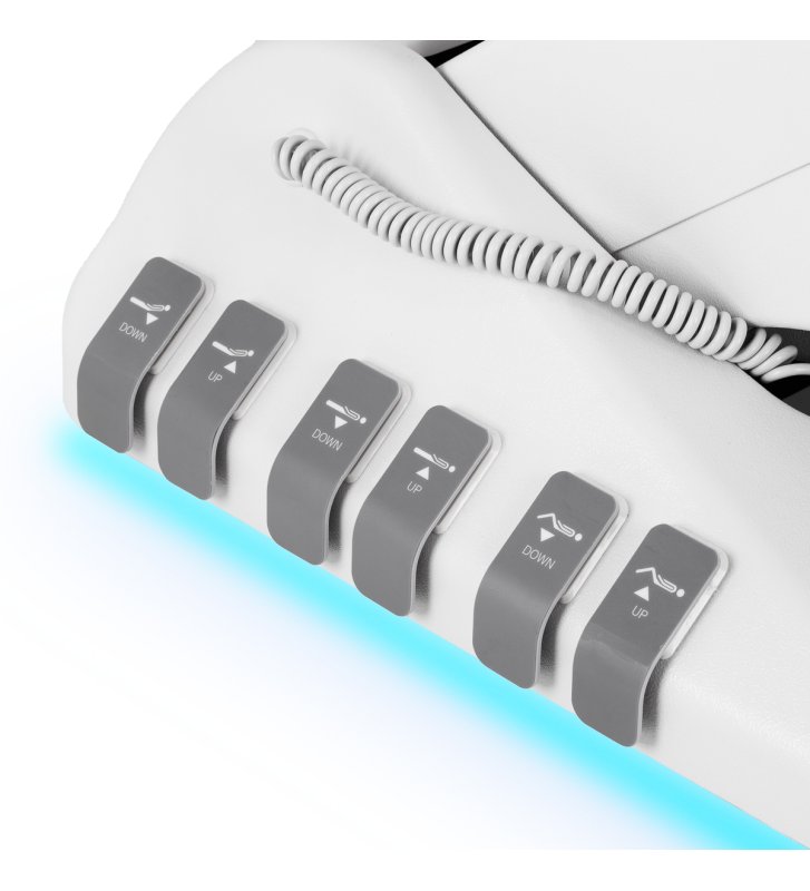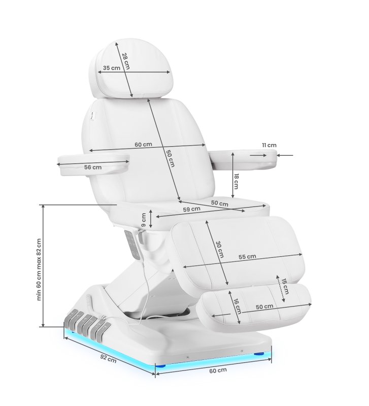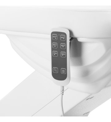 Using the easy-to-use remote control, the chair can be smoothly adjusted in three planes - height, backrest angle and footrest position. The seat can be set at a height of 60 cm to 82 cm , which ensures comfort for both clients and people performing treatments. Additionally, it is possible to adjust the headrest and footrest , and when fully unfolded, the chair reaches a length of over 2 meters , which provides full support, especially for taller clients. These functions make the chair suitable for people of different heights , ensuring comfort and easy adjustment to the needs of the treatment. The handle under the seat allows you to conveniently hang up the remote control so that it is always at hand.