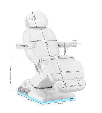 The backlighting of the base of the beauty chair gives a modern look and elegance, creating a relaxing atmosphere in the salon. The soft light promotes relaxation , providing comfort during treatments. This function not only emphasizes the aesthetics of the interior , but also introduces a subtle, soothing atmosphere, ideal for beauty treatments.