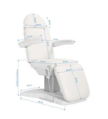 The Azzurro 891 electric beauty chair is equipped with 3 actuators controlled by a cable remote control . Ease of use and adjustment to individual needs significantly facilitate the performance of a wide range of treatments . It is characterized by stability, minimalist design and universality, so it is perfect for many specialist offices.