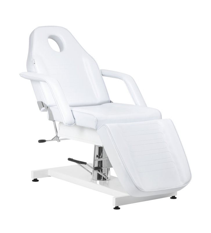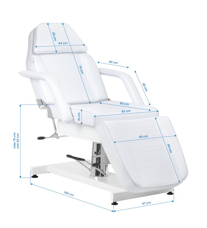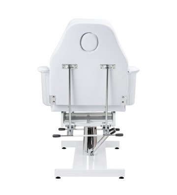 Wysokość fotela można dostosowywać w zakresie 62-75 cm bez użycia rąk za pomocą pompy hydraulicznej. Pozwala to na komfortowe korzystanie ze sprzętu osobom o różnym wzroście i umożliwia dostosowanie go do indywidualnych potrzeb zarówno klienta, jak i osoby wykonującej zabieg. Zastosowany mechanizm jest bardzo trwały i niezawodny. Dzięki otworowi w zagłówku, który jest ukryty pod odpowiednio wyprofilowaną poduszką, fotel doskonale sprawdzi się również przy zabiegach przeprowadzanych na plecach, takich jak masaże.