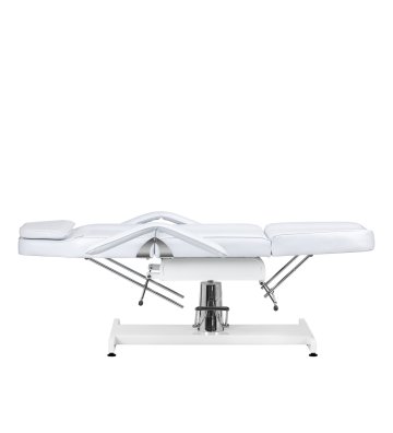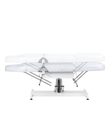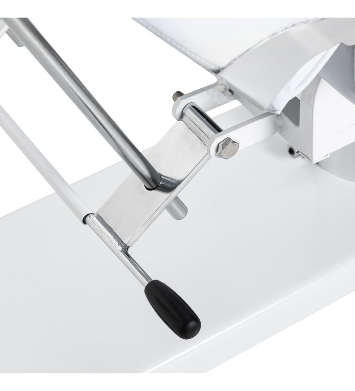Przy pomocy specjalnych dźwigni możliwa jest bezstopniowa regulacja kątów, pod którymi znajdują się podnóżek i oparcie. Pozwala to na optymalne dostosowanie ustawień do indywidualnych potrzeb, dla prawidłowego i wygodnego wykonywania zabiegów oraz komfortu użytkowania. Fotel można rozłożyć aż do pozycji leżanki, co znacząco zwiększa jego funkcjonalność zarówno podczas zabiegów na twarz, jak i ciało.