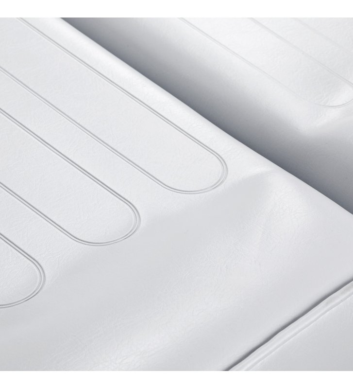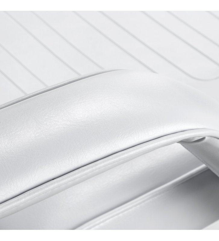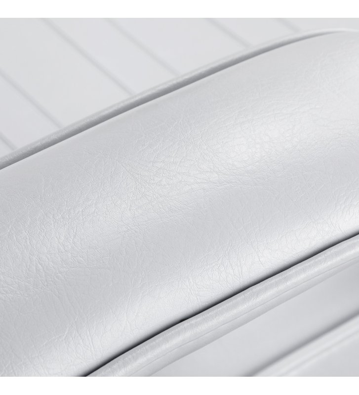 Fotel wypełniony jest pianką o odpowiedniej twardości i pokryty półmatową imitacją skóry w odcieniach bieli. Dzięki użyciu takiego materiału, sprzęt jest komfortowy w użytkowaniu, odporny na wilgoć oraz łatwy w czyszczeniu. Odpowiednio wyprofilowane obszycia nadają ergonomiczny kształt siedzisku. Solidna konstrukcja gwarantuje trwałość oraz stabilność. Prosty design i klasyczna kolorystyka pozwalają mu wpasować się w każde wnętrze.