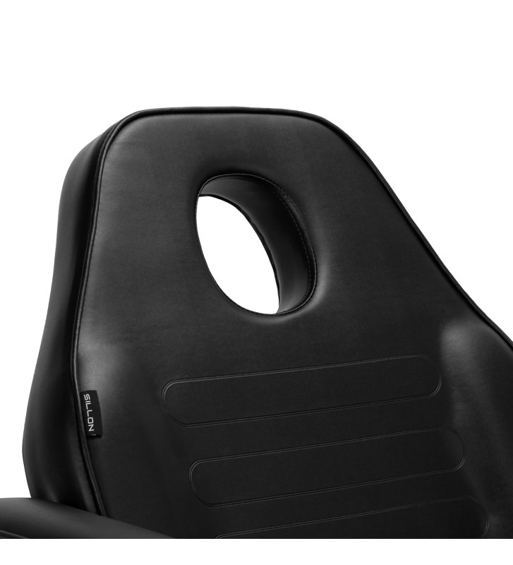 Wysokość fotela można dostosowywać w zakresie 62-75 cm bez użycia rąk za pomocą pompy hydraulicznej. Pozwala to na komfortowe korzystanie ze sprzętu osobom o różnym wzroście i umożliwia dostosowanie go do indywidualnych potrzeb zarówno klienta, jak i osoby wykonującej zabieg. Zastosowany mechanizm jest bardzo trwały i niezawodny. Dzięki otworowi w zagłówku, który jest ukryty pod odpowiednio wyprofilowaną poduszką, fotel doskonale sprawdzi się również przy zabiegach przeprowadzanych na plecach, takich jak masaże.
